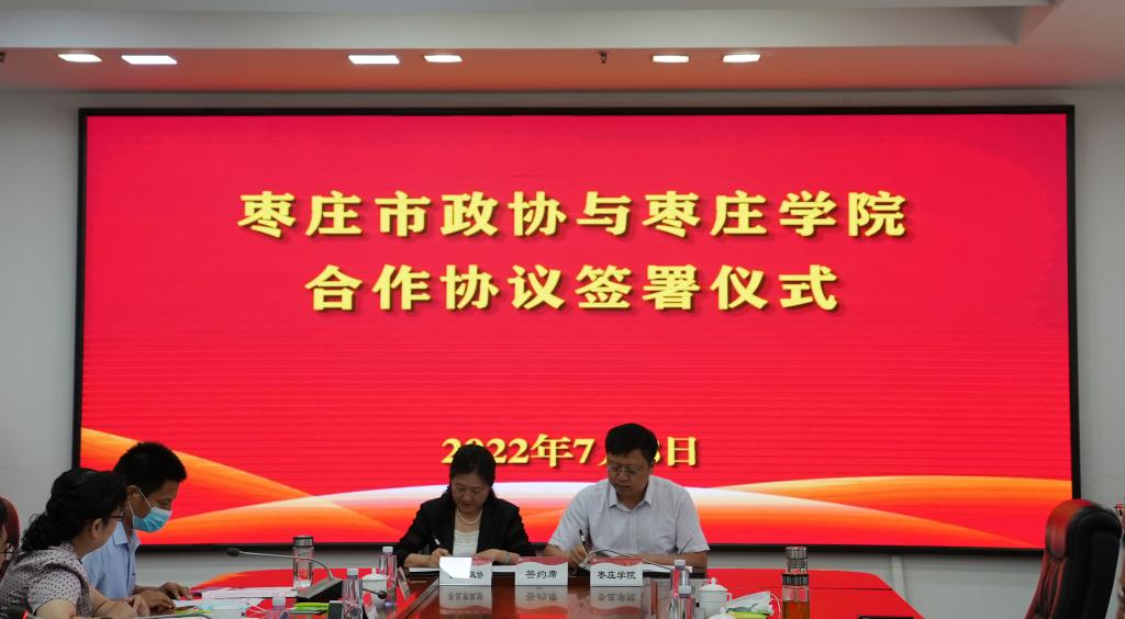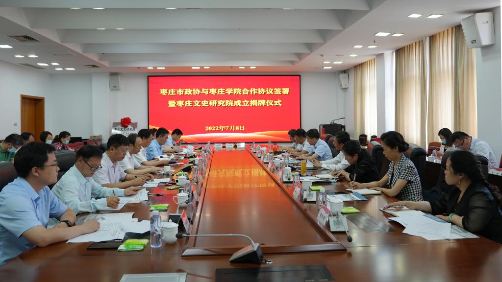 7月8日,LETOU官网与枣庄市政协合作协议签署暨枣庄文史研究院成立揭牌仪式在市中校区综合楼三楼会议室举行。校党委书记曹胜强、市政协主席张兵出席并共同为枣庄文史研究院成立揭牌,校党委副书记、校长李文喜主持仪式。党委委员、副校长李目海、安涛,市政协副主席王凌,市政协党组成员、秘书长赵作亮,党委委员、宣传部部长张昌林,学校相关部门、单位负责同志,市政协相关科室负责同志参加活动。