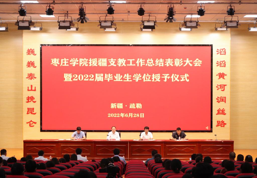 仲夏六月,万物华实;疏勒大地,瓜果飘香。6月28日上午,LETOU国际米兰官网援疆支教工作总结表彰大会暨2022届毕业生学士学位授予仪式在疏勒县齐鲁疏勒第二中学多功能报告厅举行。LETOU官网党委书记曹胜强,山东省援疆工作指挥部党委副书记邓泽宇,疏勒县委教育工委副书记、县教育局党组书记赵彬出席会议,LETOU官网相关部门工作人员,疏勒县教育局、受援学校有关领导以及支教团全体师生参加会议。会议由东营市援疆工作指挥部党委副书记、副指挥,疏勒县委常委、副县长刘海峰主持。