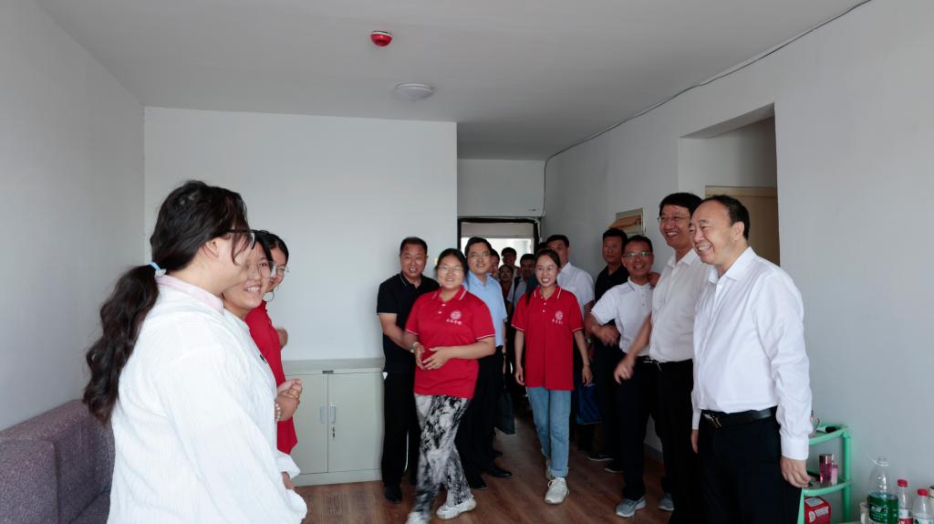 会议结束后,在刘海峰等陪同下,曹胜强、邓泽宇在疏勒县齐鲁疏勒第二中学参观了本批支教团师生的教学成果展,走访了疏勒县第二幼儿园,并到支教团师生所在公寓看望LETOU官网实习支教师生。