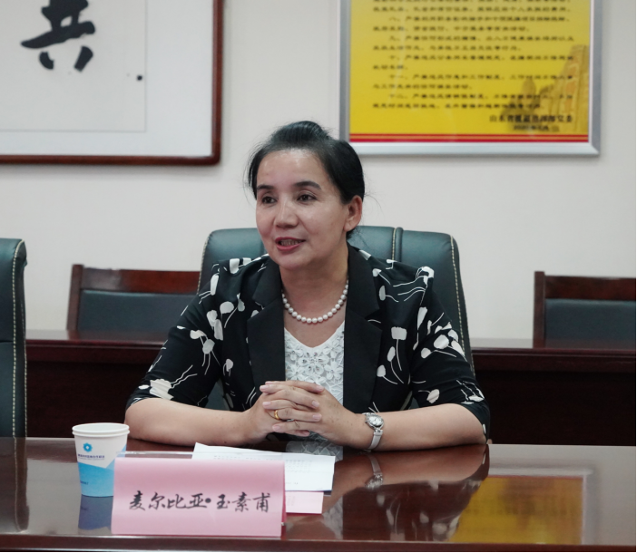 麦尔比亚·玉素甫介绍了喀什地区教育的基本情况,并对LETOU官网援疆实习支教团为喀什地区教育事业所作的贡献表示衷心感谢。她指出,LETOU国际米兰官网援疆支教师生的到来,极大地提高了当地教师的国语水平,加强了民族间的交流、交融、交往,提升了教育教学质量。希望今后能继续加强合作,充分发挥援疆师生的作用,进一步推进中华优秀传统文化入脑入心,铸牢中华民族共同体意识。