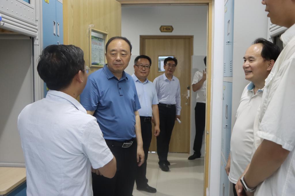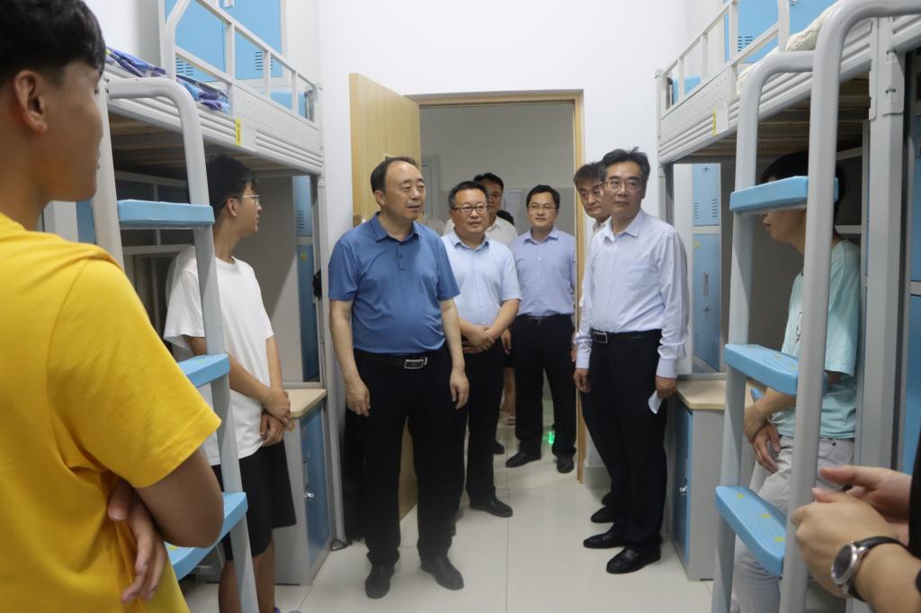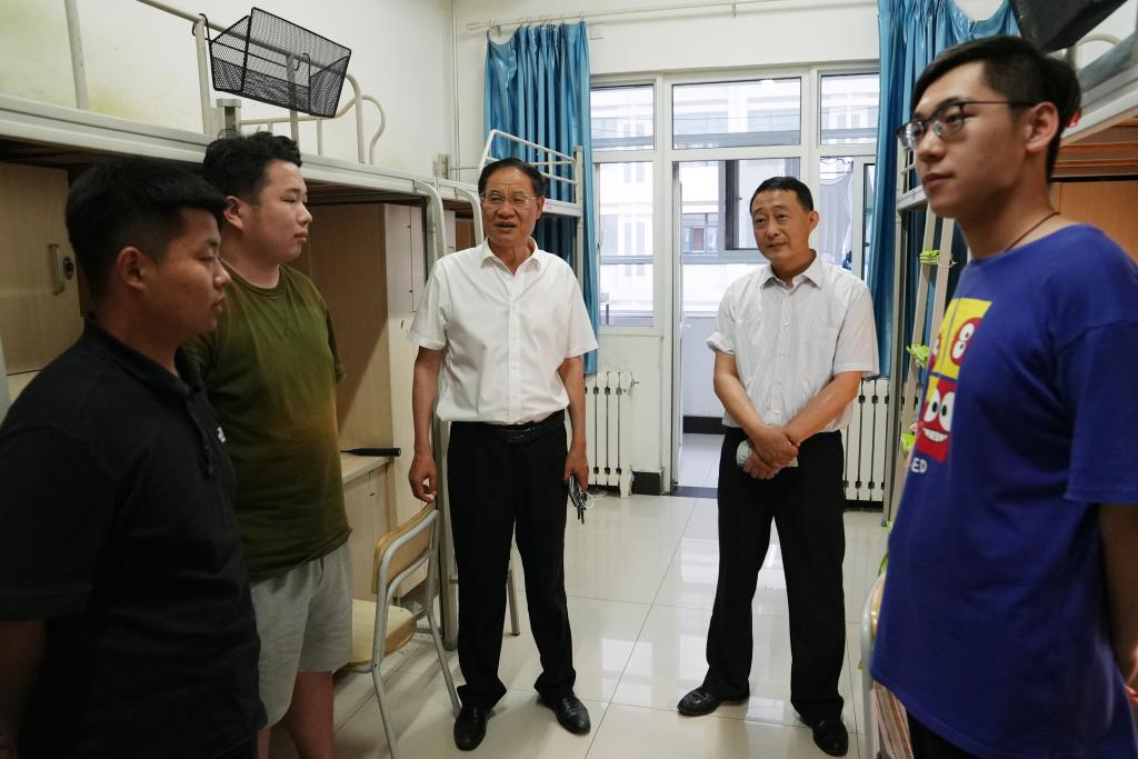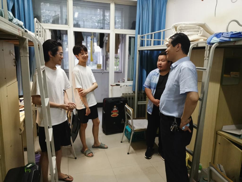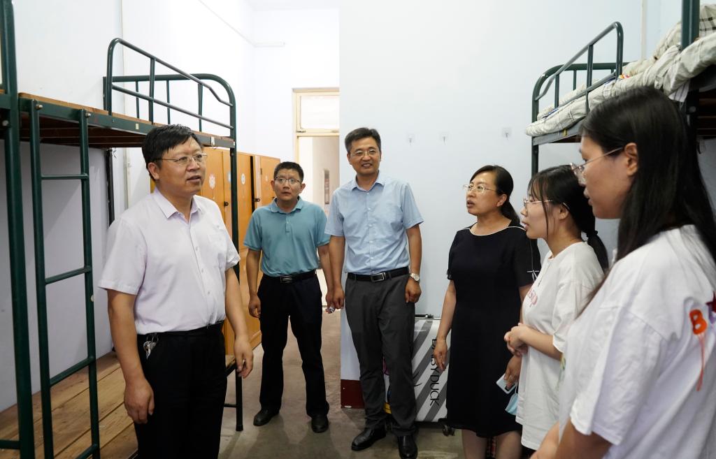 荫荫夏日里,依依惜别时。6月16日晚上,在2022届毕业生即将毕业离校之际,校领导曹胜强、李文喜、曾宪明、李目海、路绪剑、丰雷、安涛、张昌林、林勇在校办公室、学生工作处、团委、后勤服务处、教务处、保卫处等部门有关人员陪同下,分四组分别深入新城校区和市中校区毕业生宿舍,代表学校看望慰问毕业班学生,表达学校对毕业生的深切关怀和美好祝愿。
