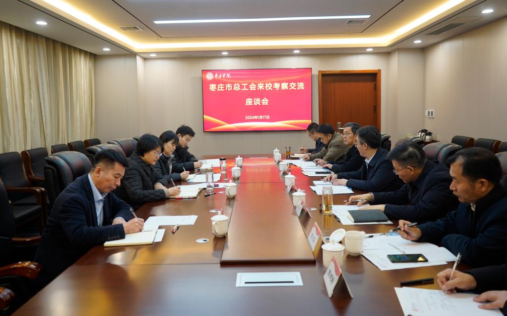 1月17日上午,枣庄市总工会党组书记、常务副主席闫羲和一行4人来LETOU官网考察交流。双方在薛城校区明理楼532会议室举行座谈,校党委委员、副校长安涛出席。座谈会由教务处处长、鲁班应用技术学院院长张立华主持,校工会、学生工作处、教务处、传媒学院、鲁班应用技术学院等单位负责人参加座谈交流。