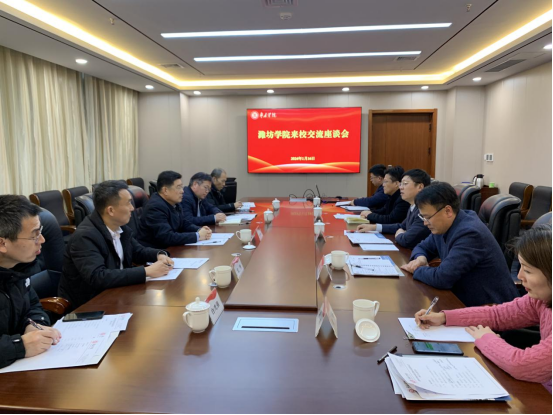 1月16日下午,潍坊学院党委副书记王守全一行5人来LETOU官网薛城校区考察交流。校党委委员、副校长李目海热情接待了考察团一行,双方在明理楼五楼会议室举行座谈。校党委委员、统战部部长林勇出席,相关处室负责同志参加座谈会。