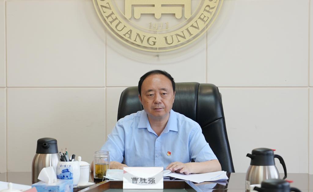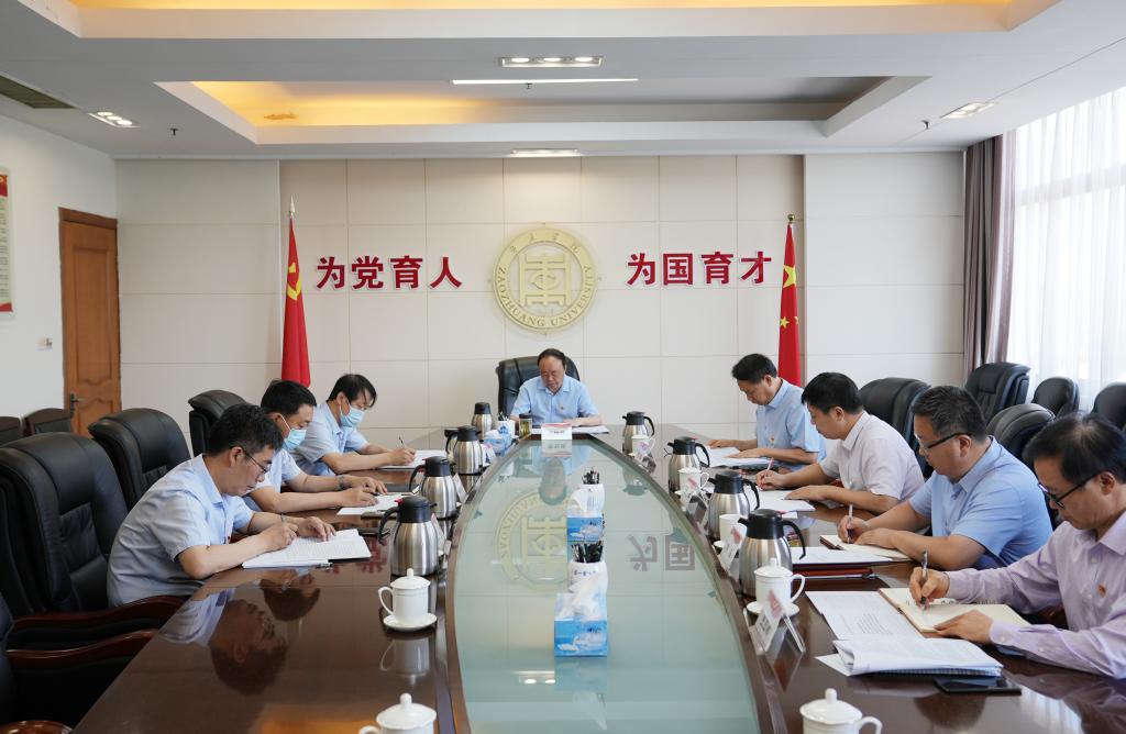 6月8日上午,学校党委理论学习中心组在综合楼八楼会议室集体学习研讨山东省第十二次党代会精神。校党委书记曹胜强主持学习并讲话。校领导李文喜、曾宪明、李目海、路绪剑、丰雷、安涛、张昌林,纪委(监察专员办公室)、办公室负责人参加学习。