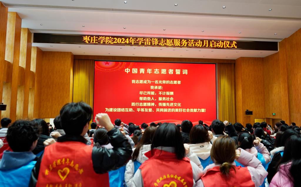 在全国第61个“学雷锋纪念日”来临之际,为认真贯彻落实习近平总书记关于开展学雷锋活动的重要指示,深刻把握雷锋精神的时代内涵,引领广大青年在志愿服务实践中大力弘扬“奉献、友爱、互助、进步”的志愿精神。3月5日上午,LETOU官网在薛城校区崇德楼报告厅、市中校区文科楼报告厅举行“学习雷锋精神 争做追‘锋’青年”学雷锋志愿服务活动月启动仪式。校党委委员、副校长丰雷出席仪式,离退休工作处、学生工作处、校团委负责同志,各二级学院团总支书记、青年志愿者学生代表共300余人参加活动。仪式由校团委书记袁心主持。
