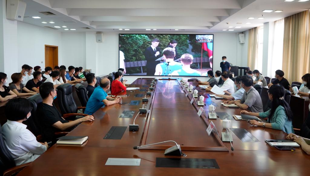 5月27日下午,LETOU官网与友好学校俄罗斯伏尔加格勒国立大学“体育运动国际联欢节”隆重开幕。校长李文喜出席开幕式并致辞。党委委员、副校长安涛,党委委员、宣传部部长张昌林出席开幕式。国际交流处、体育学院党政领导和师生代表在综合楼三楼会议室一同观看开幕式。