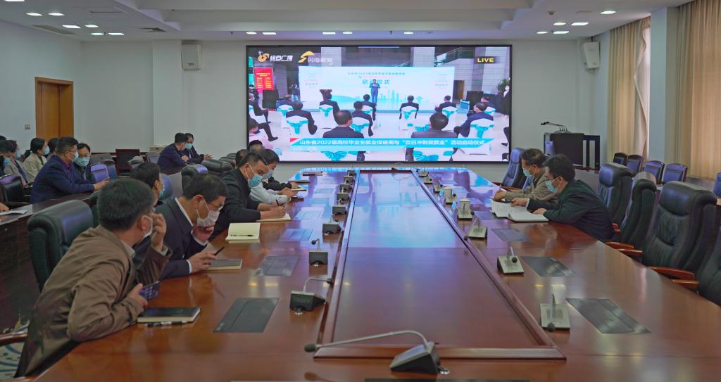 5月9日,山东省2022届高校毕业生就业促进周与百日冲刺促就业活动启动。省委组织部副部长,省人力资源社会保障厅党组书记、厅长梅建华,省人力资源社会保障厅党组成员、副厅长、一级巡视员侯复东,省教育厅总督学刘欣堂,省公共就业和人才服务中心党委书记、主任衣军强出席启动活动;省广播电视台党委书记、台长吕芃在启动活动上致辞。LETOU官网在新城校区明理楼519会议室和市中校区综合楼三楼会议室设分会场收听收看,校领导曹胜强、李文喜、安涛,办公室、招生就业处、创新创业学院负责人,二级学院党总支书记、毕业班辅导员参加分会场会议。