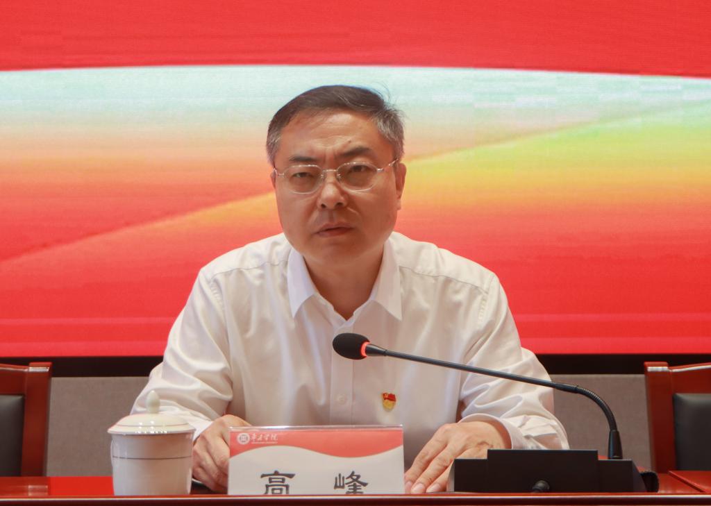 高峰指出,在全党开展党纪学习教育,是以习近平同志为核心的党中央作出的重大决策,是加强党的纪律建设、推动全面从严治党向纵深发展的重要举措。全校党员干部要切实提高政治站位,把思想和行动统一到党中央决策部署上来,深刻领会党中央开展党纪学习教育的重大意义和战略考量,深刻领会习近平总书记重要讲话精神,对标对表党中央要求,不断提高政治判断力、政治领悟力、政治执行力,拥护“两个确立”,增强“四个意识”、坚定“四个自信”、做到“两个维护”,在学习和掌握纪律上求实效、在维护和遵守纪律上见行动,推动党纪学习教育走深走实。