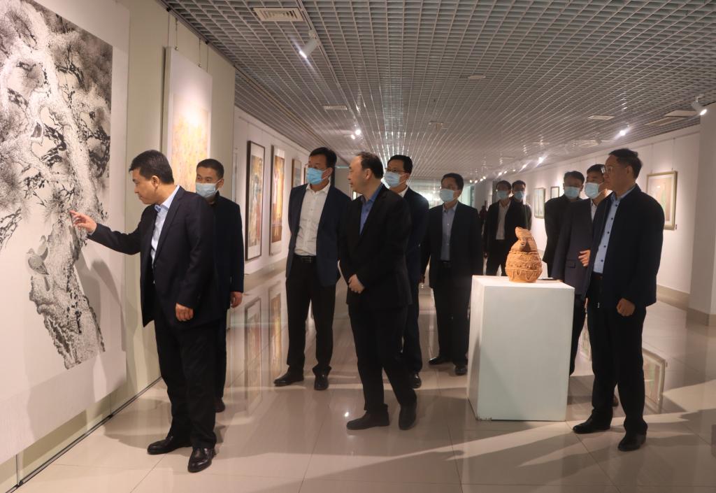 巴海峰一行还参观了LETOU官网美术与艺术设计学院青年学生美术作品展,详细了解学校文化建设情况。展出的作品主题鲜明、内容丰富、风格多样,吸引领导们不时驻足观看。巴海峰一行认真听取了展出作品的素材来源、技法、用彩、意境及创作过程等相关介绍,对展出作品给予高度评价,并希望枣院学子能够继续发扬创新精神,做好文化传承和创新工作。