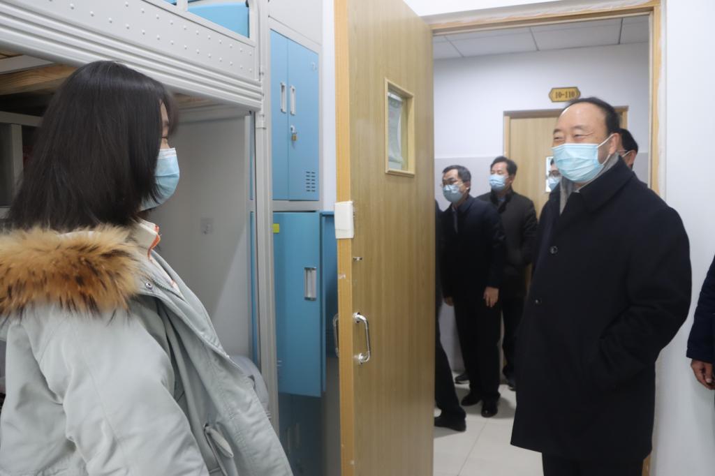 接着,校领导一行实地查看了学生宿舍、餐厅,了解学生返校后的学习生活情况,并认真听取了相关部门负责人有关疫情防控及春季开学准备工作的情况汇报。检查过程中,校领导向一线工作人员表示亲切慰问,对相关部门所做的大量细致工作表示充分肯定。校领导强调,各职能部门要继续强化服务意识、责任意识,加强沟通、互相配合,将后勤保障等各项服务落实到位,为师生营造良好的学习、工作和生活环境,为新学期各项工作的顺利开展奠定良好基础。