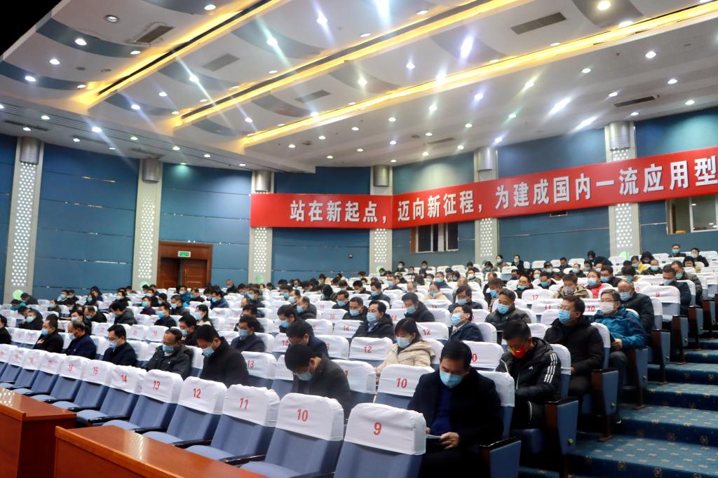 接着,校长李文喜以《踔厉奋发启新程笃行不怠向未来》为题,从八个方面对2021年工作进行简要回顾,并对2022年重点工作任务进行安排部署。他指出,一年来党的领导全面加强,发展基础更加坚实,教育教学质量不断提升,人才队伍持续壮大,科研创新能力不断增强,合作交流持续深化,治理能力持续提升,校园疫情防控和安全工作有序推进。李文喜要求,2022年要围绕“重点工作攻坚年”这一主题,以提升质量为目标,坚持“项目化攻坚、破题式推进、清单式管理”,把握“深刻理解、主动作为、执行到位、部门联动、靶向服务”工作总基调,抓好“六大攻坚、四个保障”,即:强化硕士点建设攻坚、强化科研成果培育攻坚、强化人才培养提质攻坚、强化人才引育攻坚、强化国内外开放合作攻坚、强化经费支持攻坚;强化组织保障、机制保障、民生保障、安全保障。最后,他强调,全校上下要凝心聚力,埋头苦干,踔厉奋发,开创学校事业发展新征程。要牢固树立超前谋划的意识,始终保持干事创业的激情,始终保持奋发有为的精神状态,注重凝聚团结协作的强大合力。