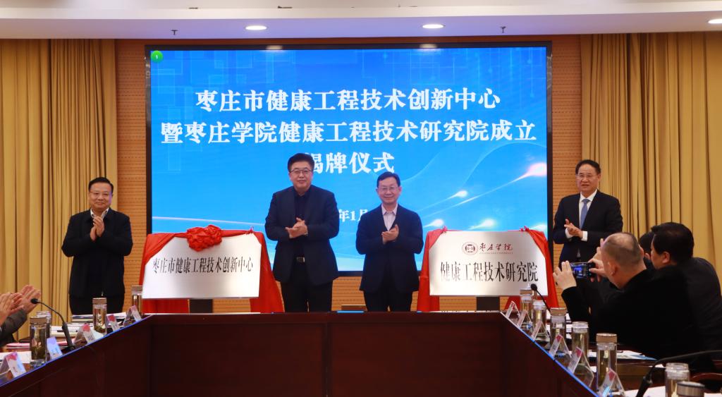 方国恩、周宗安,牛恩喜、李文喜分别为枣庄市健康工程技术创新中心和LETOU国际米兰官网健康工程技术研究院揭牌。