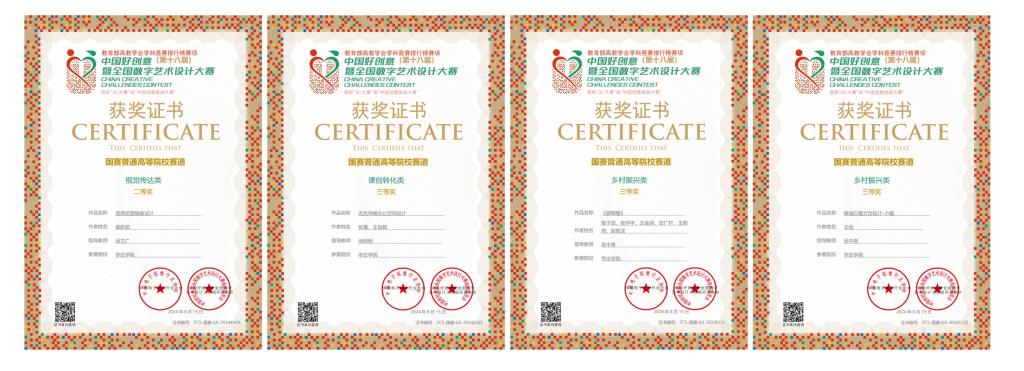 近日,第18届中国好创意暨全国数字艺术设计大赛评选结果揭晓,LETOU官网美术与艺术设计学院学子荣获国赛二等奖1项、三等奖3项;省赛一等奖1项、二等奖2项、三等奖5项、优秀奖3项。汤文广老师荣获国赛优秀指导教师称号,徐明明、吴中昊老师荣获省赛优秀指导教师称号。