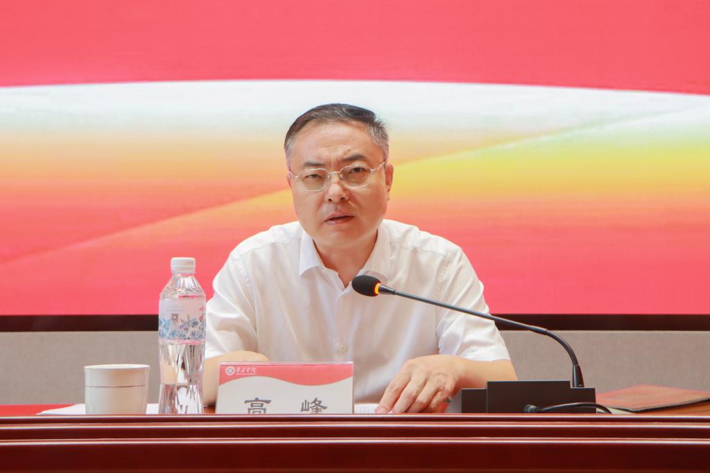 随后,高峰宣讲党的二十届三中全会精神,指出此次全会是在以中国式现代化全面推进强国建设、民族复兴伟业的关键时期召开的一次十分重要的会议。全校要深入学习领会习近平总书记在党的二十届三中全会上的重要讲话精神;全面准确理解《决定》提出的进一步全面深化改革重大举措;全力以赴抓好全会精神贯彻落实。同时,结合学习贯彻落实党的二十届三中全会精神,高峰作了题为《抢抓机遇 实干争先 不断开创国内一流应用型大学建设新局面》的报告,从掌握发展主动,奋力实施“两升三大”发展思路,推进学校“三步走”发展战略落地;聚焦重点工作,锚定绩效考核各项指标任务,奋力推进高质量发展提质增效;坚持党的领导,深化党建与业务融合发展,为学校改革发展提供坚实保障等三个方面对学校相关工作进行安排部署。