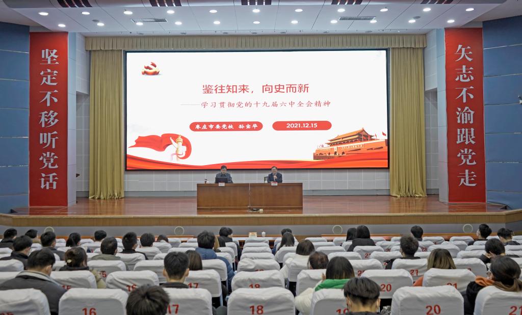 按照市委统一部署,12月15日下午,市委宣讲团成员、市委党校教务处孙宝华教授莅临LETOU官网,在综合楼学术报告厅为师生作党的十九届六中全会精神宣讲报告。校党委委员、宣传部部长张昌林主持报告,市中校区学院团总支书记、辅导员、学生代表等200余人到场聆听报告。