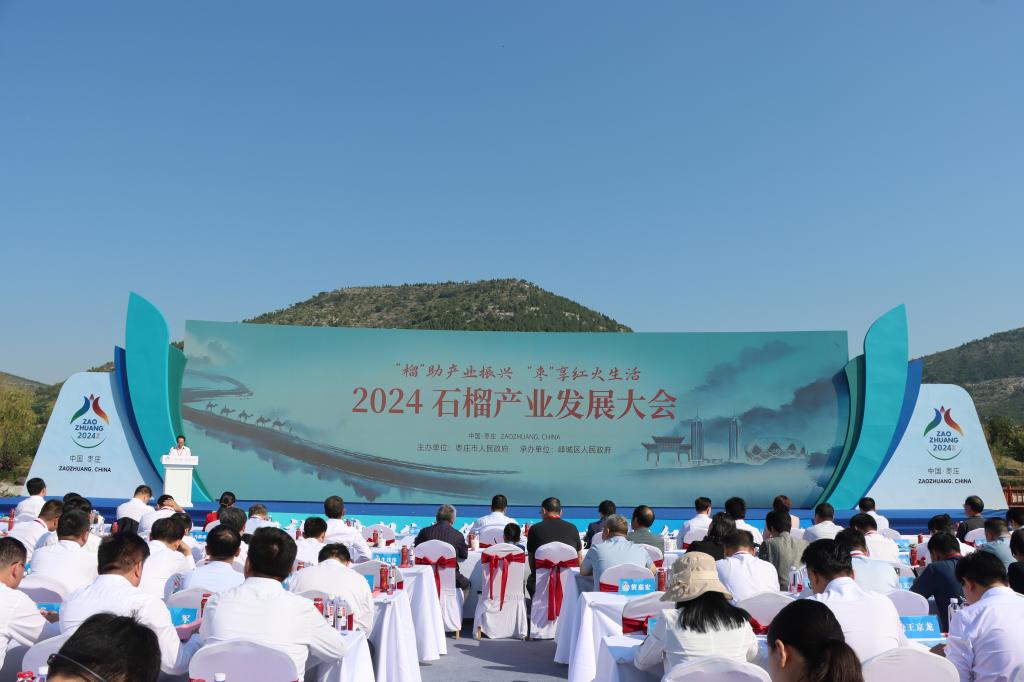 9月25日上午,由枣庄市人民政府主办、峄城区人民政府承办的“‘榴’助产业振兴 ‘枣’享红火生活”2024石榴产业发展大会开幕式在枣庄市峄城区石榴博览园举行。