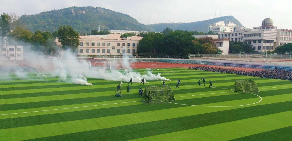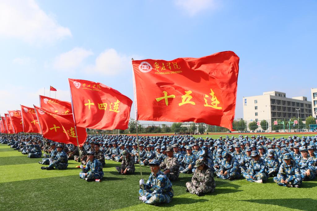 旗帜飘飘,激荡心中热血;军姿挺拔,风发学子意志。伴随着昂扬的旋律,同学们口号嘹亮、脚步铿锵,展示了分列式、匕首操、擒敌拳、应急棍、红蓝对抗等训练项目。大家动作整齐到位,出手敏捷利落,阵阵呐喊声响彻云霄,充分展示了枣院学子青春向党、挺膺担当的家国情怀。