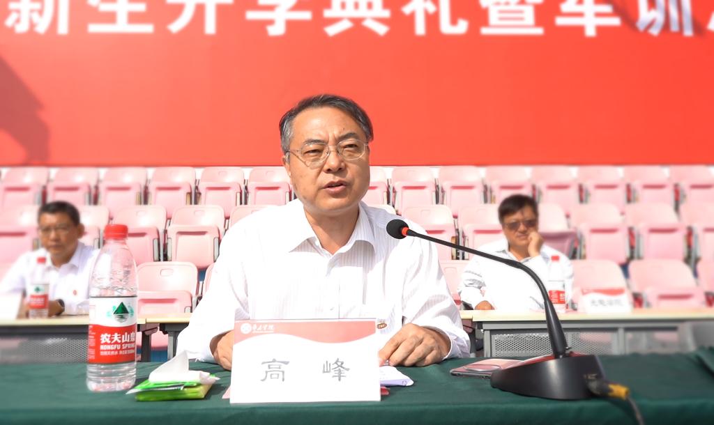 高峰、李文喜致辞,代表学校向全体2024级新生表示热烈欢迎和诚挚祝贺,并以《青春有梦 强国有我》为题为新生讲授开学第一课。高峰充分肯定了同学们的军训成果,回顾了学校近年来的办学成就和发展成果,并深情寄语2024级新同学:一是坚定理想信念,涵养家国情怀。希望同学们构建心有大我的人生格局,把个人成长与国家发展大局联系起来,肩负起时代赋予的历史使命,把青春奋斗融入党和人民的事业,努力成长为担当民族复兴重任的时代新人,为新时代赋能,为中国梦续航。二是传承优秀文化,砥砺人格品行。希望同学们多从优秀传统文化、红色文化、运河文化、匠心文化中汲取新的智慧和力量,不断涵养品格、提升境界,正心明道、怀德自重,做有志气、有骨气、有底气的时代新人。三是锻造真才实学,练就过硬本领。希望同学们以求知若渴的“空杯心态”,拓展学习的视野、延伸认知的边界,勤学善思、学以致用,不断用奋斗去创造属于自己的精彩,做勇于追梦、执着圆梦的有志青年。四是提升创新能力,激扬奋斗梦想。希望同学们以先进为榜样,脚踏实地,勇于创新,在激扬奋斗中成为卓越的创造者,不断超越自己,让青春在创新创造中持续焕发光彩。