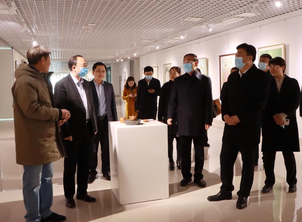 随后,刘天东一行来到博雅楼参观了LETOU官网美术与艺术设计学院青年学生美术作品展、学生社团民间手工艺协会作品展,认真听取了相关介绍,并建议学院下一步可以积极面向社会举办作品展,以地方元素为创作题材,更好服务地方发展,为枣庄“工业强市 产业兴市”贡献学院力量。