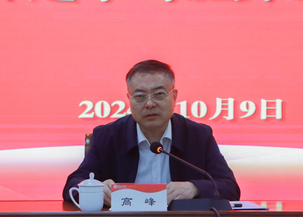 为抓好此次专题学习,高峰提出三点要求:一是提高思想认识,完整准确全面领会党的二十届三中全会精神。要把学习好、领会好、贯彻好全会精神作为学习的着力点,深刻认识领会全会的历史意义、进一步全面深化改革的主题以及全面深化改革的重大原则。二是主动对标对表,全面准确把握进一步全面深化改革的重大举措。要站在战略和全局的高度深刻认识和把握进一步全面深化改革的总目标和“七个聚焦”的历史任务、“统筹推进教育科技人才体制机制一体改革”等重大改革举措,领会好改革意图,把握准改革方向。以全会精神为指引持续深化学校教育综合改革,以实际行动推动全会精神在学校落地见效。三是提高政治站位,持续巩固拓展学习成果。要坚持原原本本“学”、带着问题“思”、知行合一“悟”,全力以赴抓好学习。要大力弘扬理论联系实际的马克思主义学风,正确把握好学与用、知与行的关系,自觉把党的创新理论运用到干好本职工作、推动学校事业发展的火热实践中。要强化全会精神的研究阐释,推出更多有影响力的理论研究成果,引导全校党员干部切实把全会精神领会深、理解透、把握准。要分层次、全覆盖、系统性抓好全会精神的学习宣传。