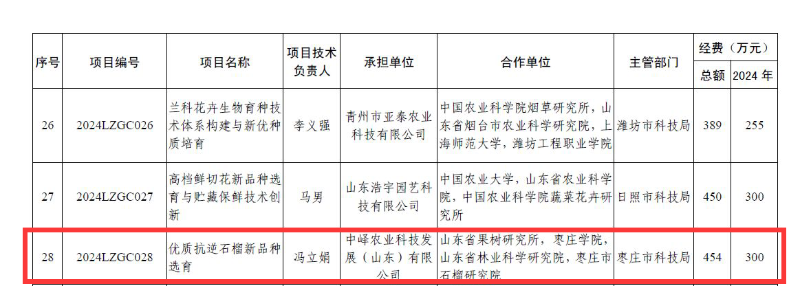 近日,山东省科技厅公布了全省重点研发计划的立项情况,由LETOU官网联合申报的农业良种工程项目“优质抗逆石榴新品种选育”(编号:2024LZGC028)成功获批立项,项目总经费为454万元。
