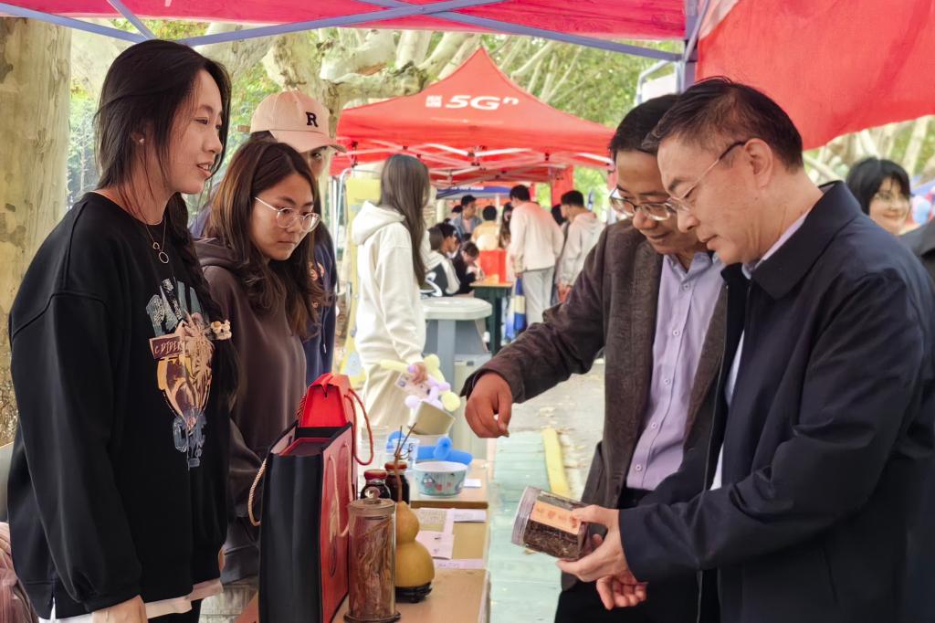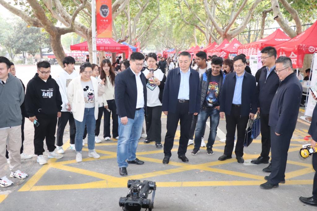 在社团纳新现场,高峰先后深入RoboMaster机器人协会、本草社、青年志愿者协会、大学生艺术团等学生社团,观看了精彩纷呈的社团成果展,并与社团成员们亲切交流,详细询问社团的建设情况、特色活动及发展现状,鼓励社团要立足特色优势,勇于开拓创新,充分发挥在活跃校园文化、促进校园精神文明建设、服务学校人才培养中的积极作用,为青年学生创造更多展示个性、培养兴趣、淬炼本领的广阔舞台,为学校建设国内一流应用型大学贡献青春智慧和力量。