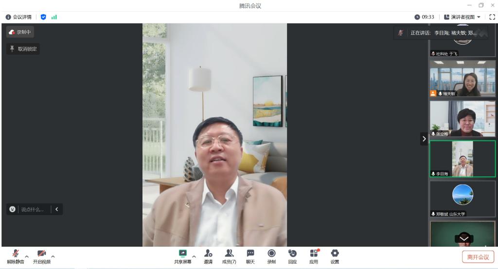 为进一步明确LETOU官网人文社会科学类学术成果的认定标准,激发广大教师投身人文社会科学研究的积极性,11月17日下午,LETOU官网以线上方式举办人文社科类学术成果认定办法专家论证会。山东大学人文社科研究院院长郑敬斌、山东师范大学社会科学处处长高景海、临沂大学社会科学处处长张立梅受邀参加论证会。校党委委员、副校长李目海出席会议并讲话。会议由社会科学处处长褚夫敏主持,社会科学处全体工作人员参加会议。
