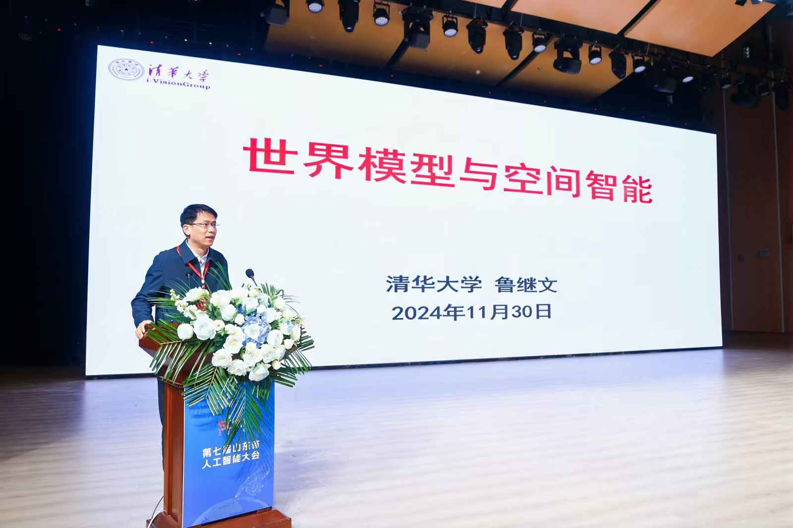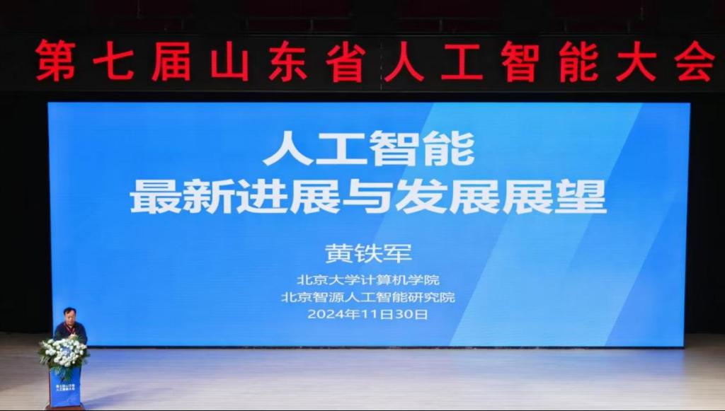 大会邀请了21位省内外人工智能领域的知名专家做大会报告。开幕式后,进行了7场主会场报告,北京大学黄铁军教授以“人工智能最新进展与发展展望”为题、清华大学鲁继文教授以“世界模型与空间智能”为题、山东大学张伟教授以“从机器人学习到具身智能探索与进展”为题、天津大学李克秋教授以“区块链技术与系统”为题、齐鲁工业大学李金宝教授以“复杂场景下显著性目标检测研究”为题、北京邮电大学何召锋教授以“安全可信人工智能及其应用”为题、清华大学孙茂松以“大模型与通用人工智能:发展态势及其典型应用”为题作报告。