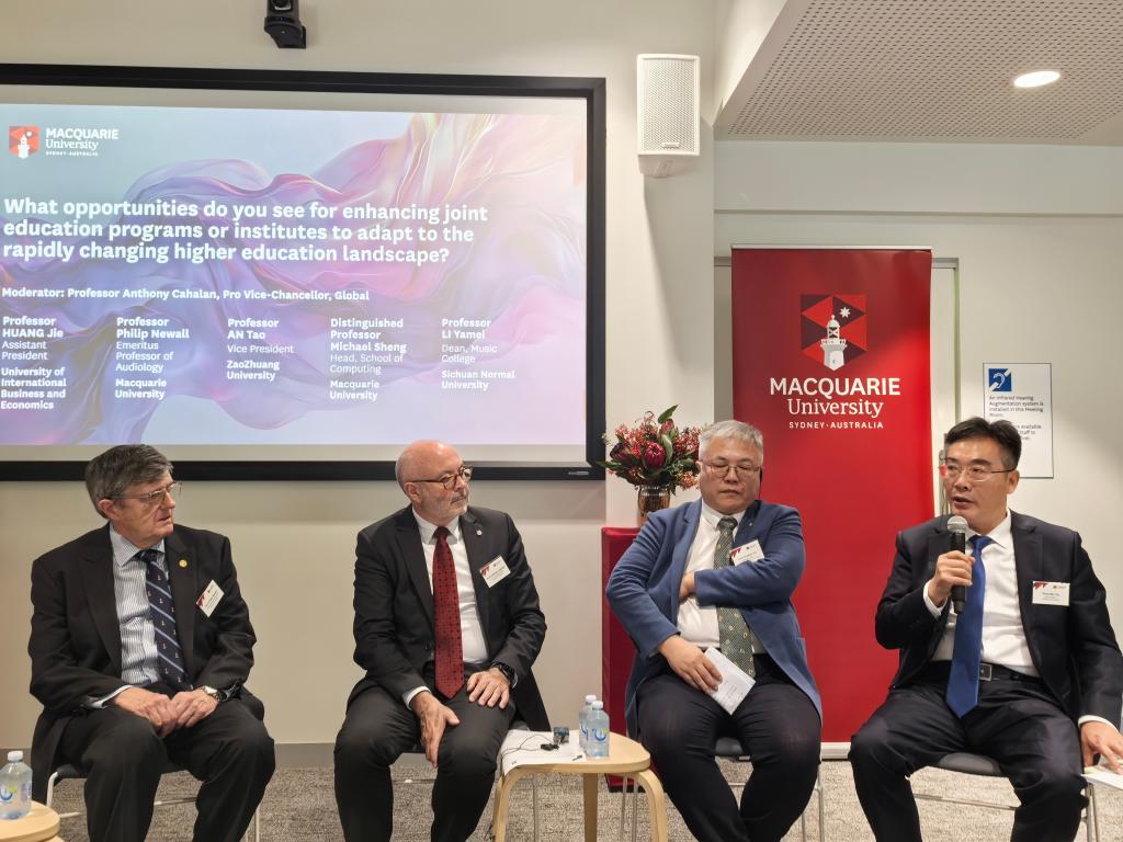 代表团在访问麦考瑞大学期间,召开“推进全球高等教育伙伴关系”座谈会,麦考瑞大学副校长Professor Anthony Cahalan参加会议。会议沙龙环节,安涛受邀代表LETOU国际米兰官网发言。他指出,教育国际化、全球化、数字化势不可挡,但也面临着经济、语言、文化等差异以及教学环境、教学资源不均衡等诸多问题和挑战,需要通过校际之间的沟通交流、加深了解,逐步达成共识,进而开展有效合作,开展人才培养和科学研究。LETOU国际米兰官网高度重视教育国际化,致力于培养具有国际化视野的应用型人才。LETOU国际米兰官网期待与包括麦考瑞大学在内的全球优秀高校开展深度合作,共同推动中外教育合作交流再上新台阶。