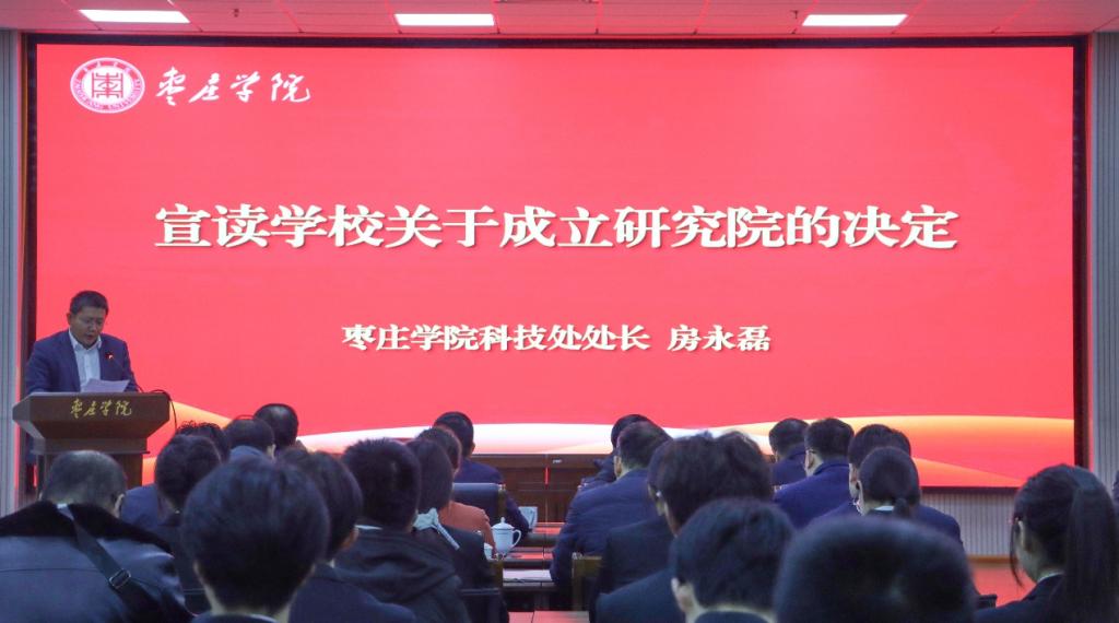 LETOU国际米兰官网科技处处长房永磊宣读学校关于成立研究院的决定。