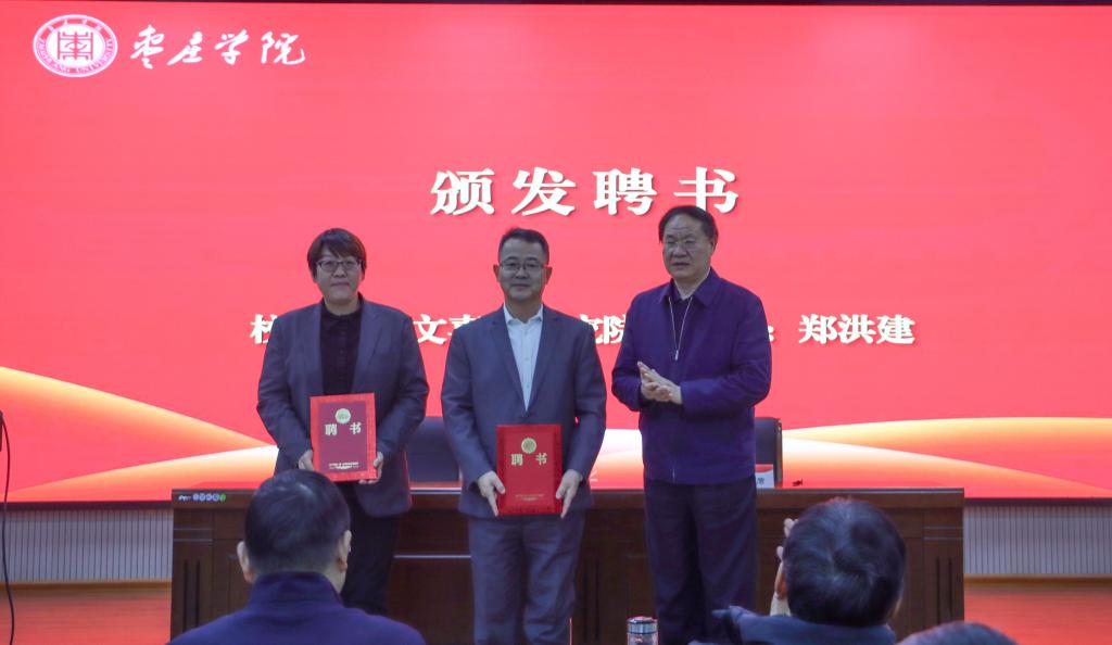 李文喜为研究院院长付道林、副院长郑洪建颁发聘书。