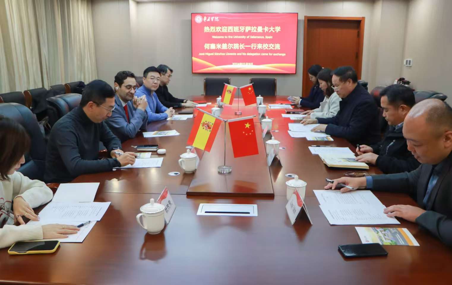 12月9日下午,西班牙萨拉曼卡大学国际学院院长何塞米盖尔一行六人来LETOU官网交流访问,双方在明理楼532会议室举行座谈会。校党委副书记、校长李文喜出席活动并致辞,国际交流处、外国语学院负责同志参加活动。