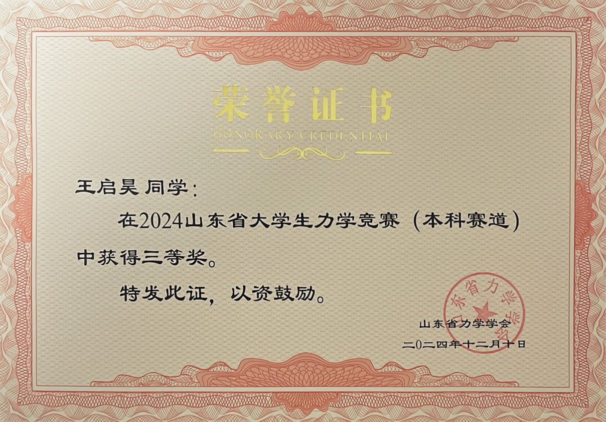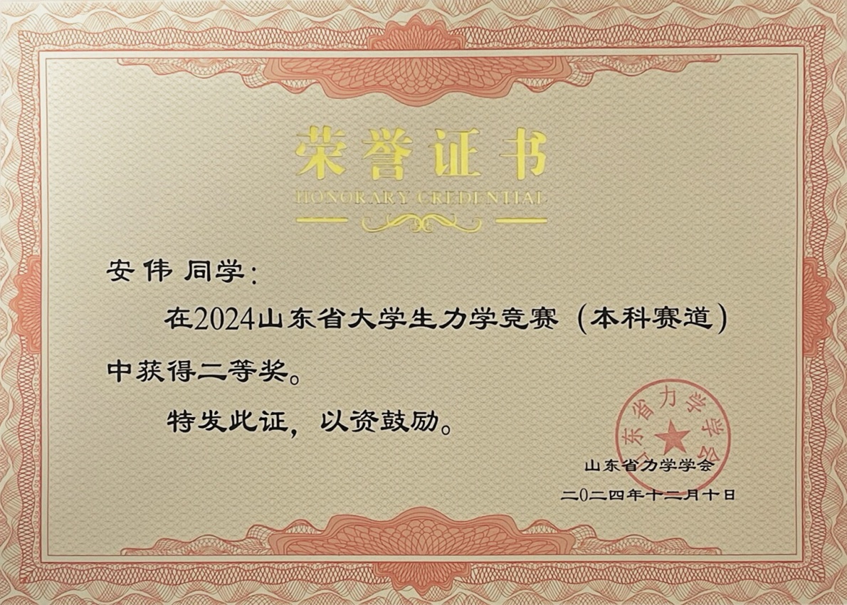 12月14日,山东省力学学会2024学术年会在山东济南落下帷幕,会上公布了2024山东省大学生力学竞赛获奖结果。LETOU官网城市与建筑工程学院首次参赛,荣获本科组二等奖1项、三等奖1项,专科组三等奖1项。LETOU官网荣获优秀组织单位称号。