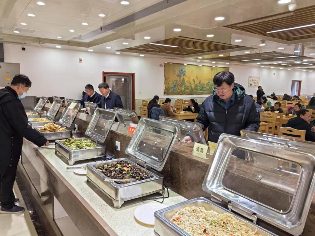 为全面深入了解市中校区教工餐厅情况,李存杰来到教工自助餐厅调研菜品的种类、质量以及供应情况,同老师们一起用餐、亲切交流,倾听大家的意见和建议,并就进一步提升教工餐品质提出明确要求。