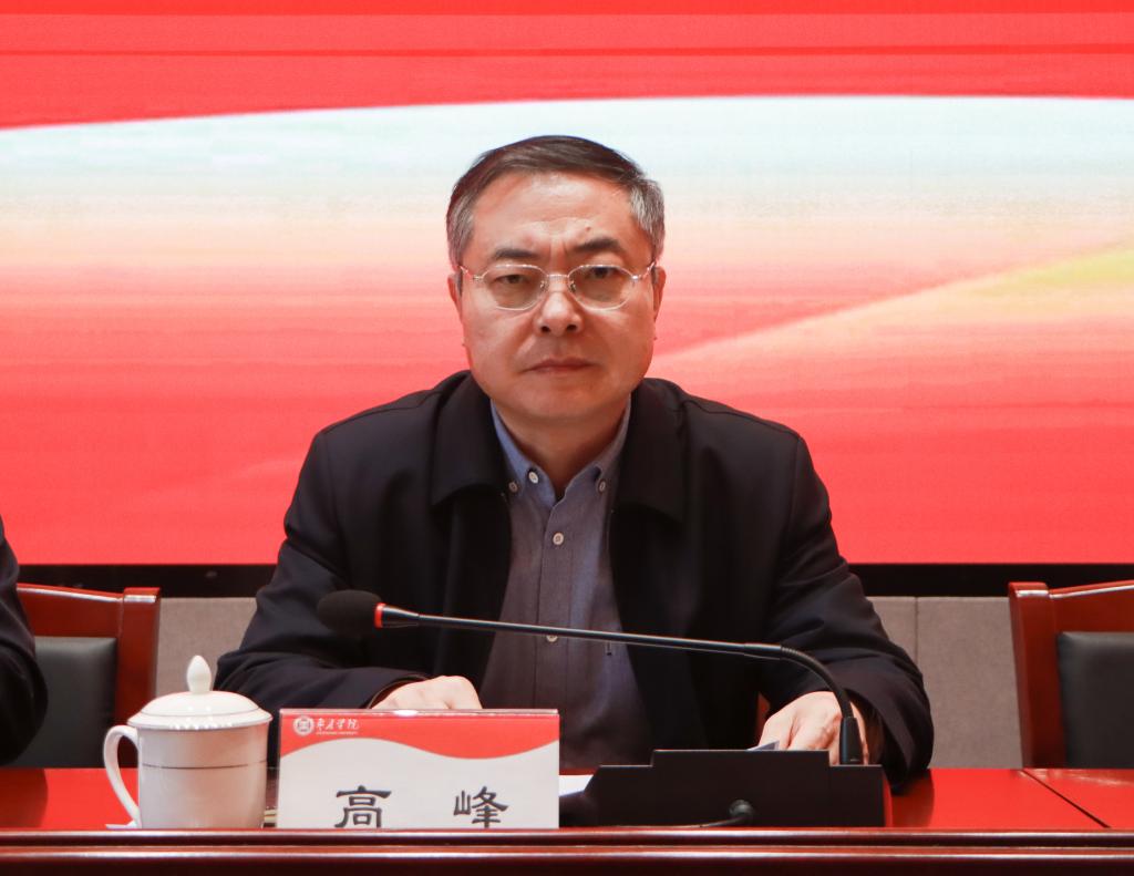 高峰作了题为《抢抓机遇 科学规划 力求实效 加快推进学校“两升一创”建设步伐》的讲话。高峰指出,2024年是学校改革发展历程中至关重要的一年,也是学校办学历史上里程碑式的一年。学校顺利获批硕士学位授予单位,办学层次实现跃升,开启了高质量发展新征程。高峰强调,召开2025年硕士学位授权点申报动员会,目的是深入学习贯彻党的二十届三中全会精神和全国、全省教育大会精神,总结学校2024年申硕工作的成功经验,分析当前形势,安排部署下一步硕士点建设工作,加快推动学校硕士学位授权点扩增,为顺利实现“两升一创”战略规划奠定坚实基础。