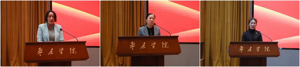 硕士学位授权点申报负责人傅金兰、卢纪丽、裘娜,主管部门负责人张立华、房永磊、褚夫敏,分别针对硕士学位授权点申报重难点突破解决方案和具体措施作表态发言。