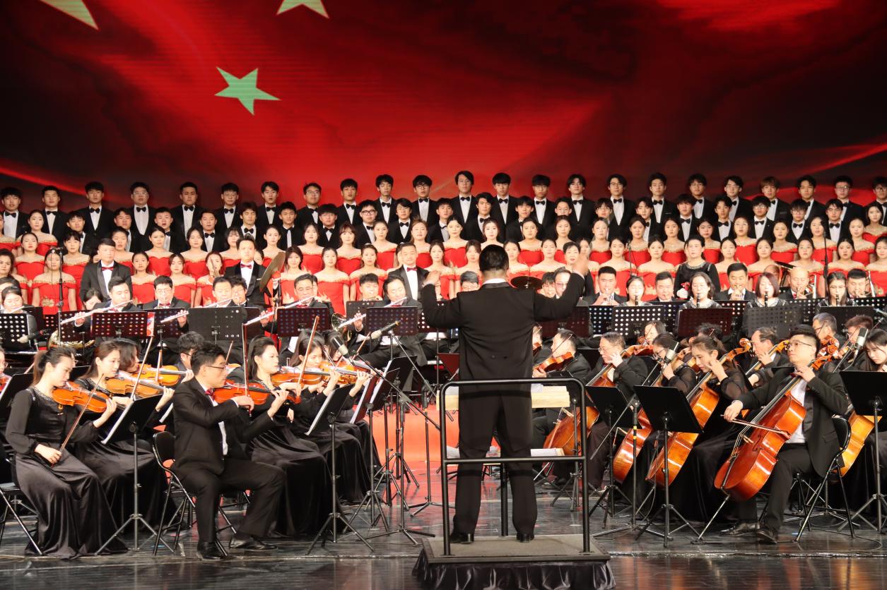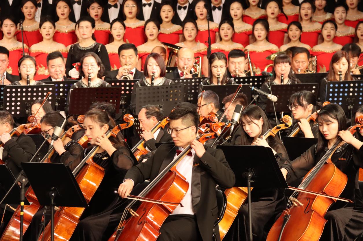音乐会由市委宣传部、市文联、市新闻传媒中心、LETOU国际米兰官网主办,市音乐家协会、LETOU国际米兰官网音乐与舞蹈学院、枣发集团共同承办。下午3:00,随着欢快的圆号声响起,管弦乐《北京喜讯到边寨》拉开了音乐会帷幕。整场演出分为“辉煌历程”“英雄赞歌”“歌里枣庄”“展望未来”4个篇章。榴花竞相绽放、红旗迎风飘扬,热烈而深情的《春节序曲》,让温暖的记忆回荡在观众心中,《红旗颂》《永远跟党走》《在灿烂阳光下》深情讴歌党的丰功伟绩,传递出奋进新征程、建功新时代的磅礴力量。