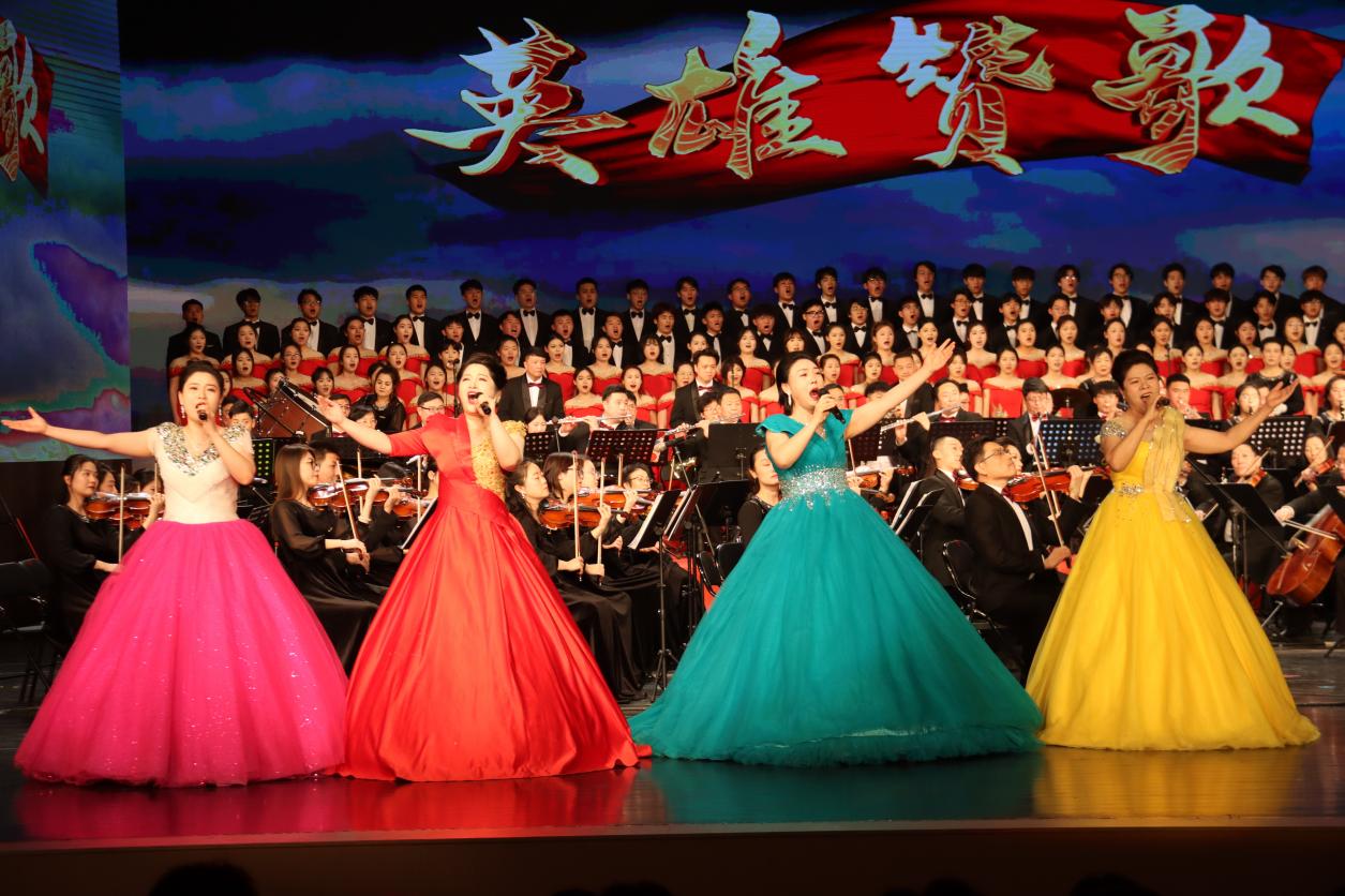 雪花漫卷、黄河咆哮,烽烟滚滚、大海扬波,万泉河水、优美清澈,《保卫黄河》《红色娘子军》《英雄赞歌》《江山》等红色经典旋律依次唱响,排山倒海的气势、穿透人心的力量,铺开了一幅广阔无垠、山河无际的壮丽画卷,铿锵有力的时代强音响彻枣庄大剧院。