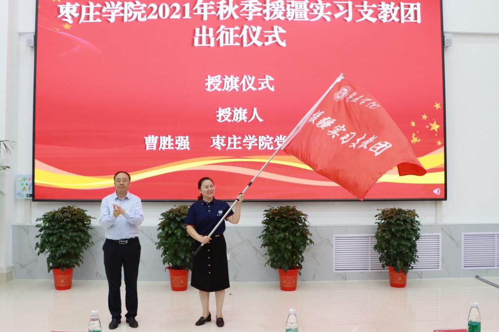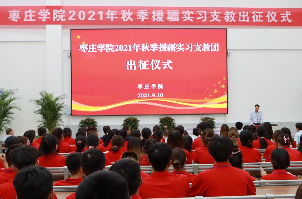 李文喜在主持时指出,援疆支教团师生即将跨越万水千山,从祖国最东部到最西部,跨越大半个中国到大漠边陲,为祖国的边疆事业奉献自己的青春年华,书写精彩的人生乐章,这充分体现了师生们的家国情怀、责任担当和远大的理想抱负和人生追求。希望全体支教师生牢记学校的期望和重托,自己担负的职责和使命,坚定信念、脚踏实地、勇于担当,以新时代“泰山挑山工”的精神倾力支教工作,展现枣院师生良好形象,续写援疆支教光荣篇章,为新疆教育事业发展和民族团结贡献“枣院”力量。