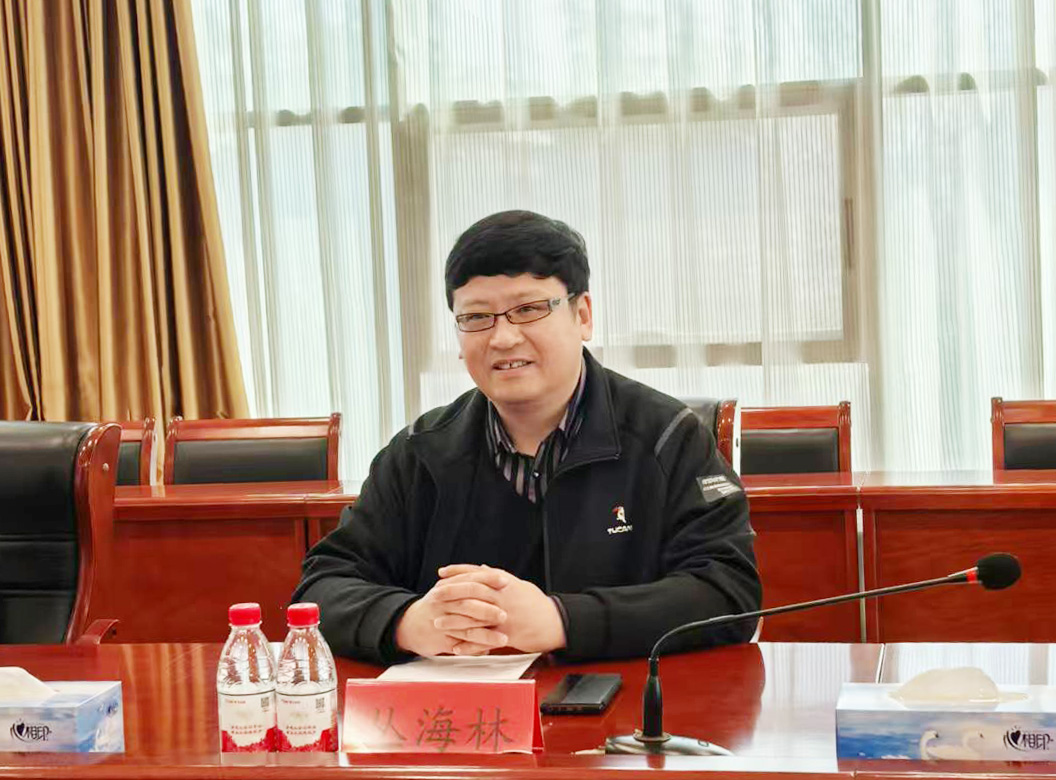 随后,双方在公司会议室进行座谈交流。丛海林充分肯定了双方前期合作取得的显著成绩,对山东益康药业股份有限公司长期以来给予学校发展的大力支持表示感谢,并重点介绍了学校“两升一创”发展目标以及硕士点建设和招生情况。他指出,学校高度重视产学研合作,始终将产学研合作视为推动学校发展、服务地方经济的重要战略举措。期望双方进一步加强合作力度、拓展合作领域、创新合作模式,在人才培养、技术研发、平台建设、学生就业等多个维度实现互利共赢。同时,希望化学化工与材料科学学院围绕企业实际需求,组建研发团队,联合开展科技攻关,加速科研成果转化,助力企业创新发展。