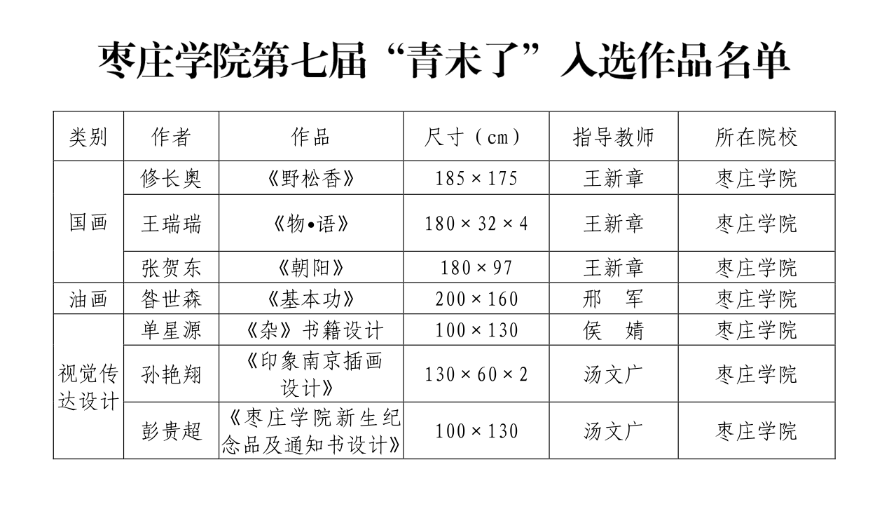 近日,由省文化和旅游厅、省教育厅联合主办的第七届“青未了——山东省高等学校美术院系应届毕业生优秀作品展”复评、评奖活动在山东美术馆举办,LETOU官网美术与艺术设计学院选送的10件2021届毕业生毕业设计作品有7件入选,其中国画作品3件、油画作品1件、视觉传达设计作品3件,入选数量居省内同类本科院校前列。