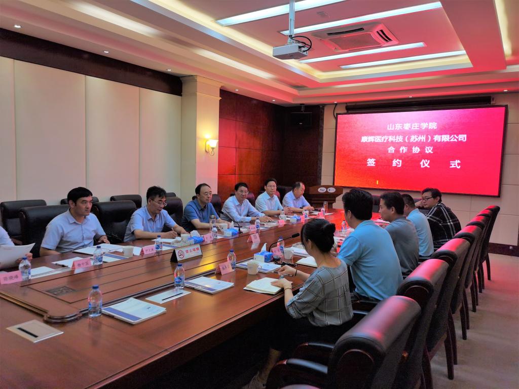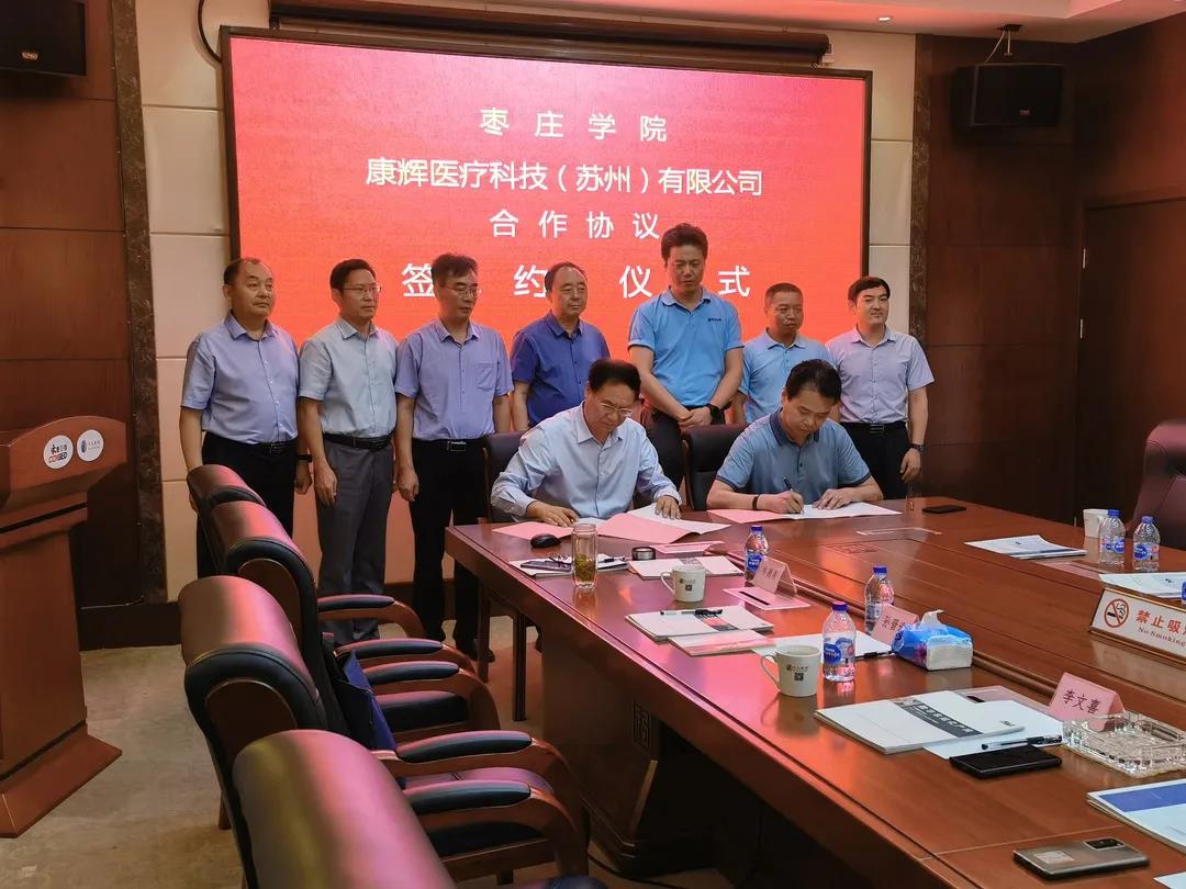 7月16日上午,校党委书记曹胜强、校长李文喜、副校长安涛带队赴康辉医疗科技(苏州)有限公司(以下简称康辉科技)考察并签订合作框架协议,校办公室、教务处、科技处、鲁班应用技术学院负责人陪同考察并参加签约仪式。康辉科技董事长陈利忠、技术副总沈益、技术总监曹永东、支部书记强羿君等出席本次签约仪式。签约仪式由陈利忠主持。