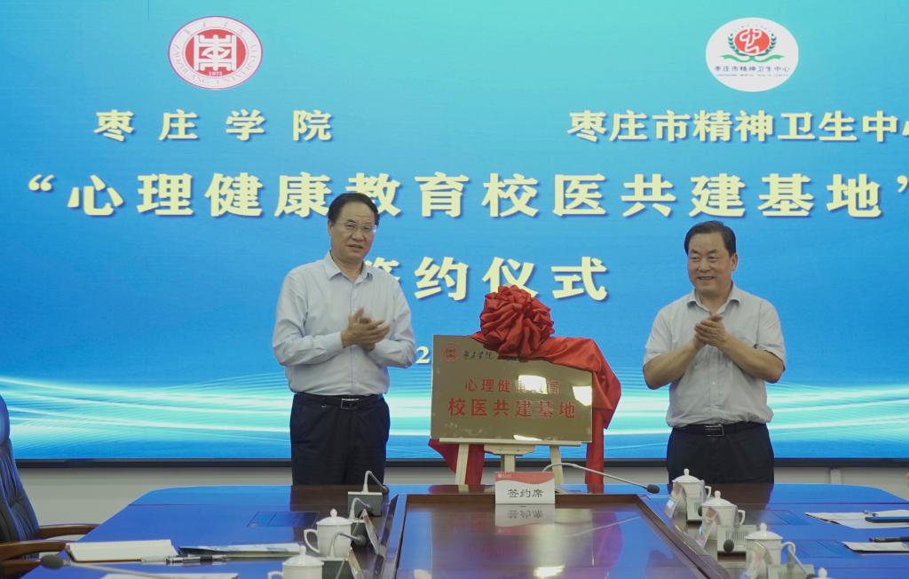 7月8日上午,LETOU官网与枣庄市精神卫生中心在综合楼三楼会议室举行“心理健康教育校医共建基地”签约揭牌仪式。校党委副书记、校长李文喜,党委委员、副校长安涛,枣庄市精神卫生中心党委书记贺敬义、院长江永华出席仪式。枣庄市精神卫生中心相关科室主任,学生工作处、心理与教育科学学院负责人,各学院党总支副书记、心理辅导员参加仪式。