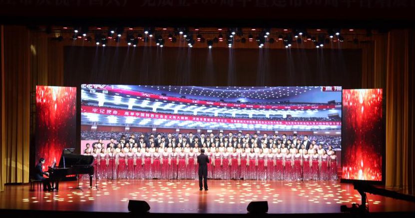 近日,由中共枣庄市委、市人民政府主办,市委宣传部、市总工会、市直机关工委、枣庄广播电视台联合承办的枣庄市庆祝中国共产党成立100周年暨建市60周年合唱展演在枣庄新城会展中心举办。LETOU官网党委副书记、校长李文喜教授莅临现场观看演出。