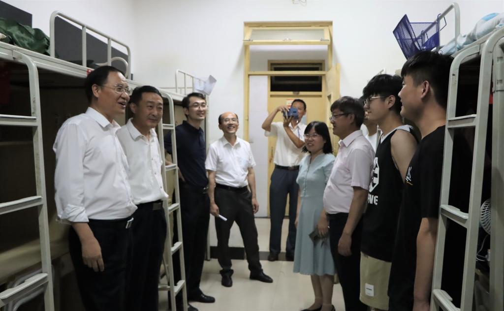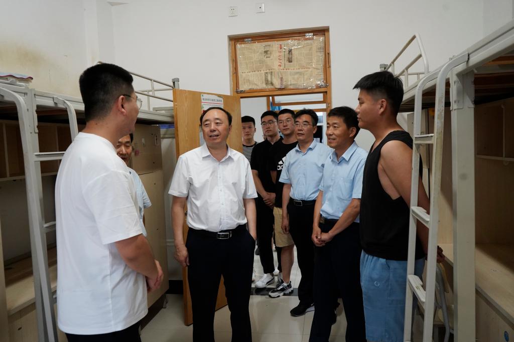 6月23日下午,在2021届毕业生即将毕业离校之际,校领导曹胜强、李文喜、李目海、路绪剑、丰雷、安涛、孙正、张昌林、林勇在校办公室、学生工作处、团委、后勤服务处、保卫处等部门有关人员陪同下,分三组深入毕业生宿舍,代表学校看望慰问毕业班学生,表达学校对毕业生的深切关怀和美好祝愿。