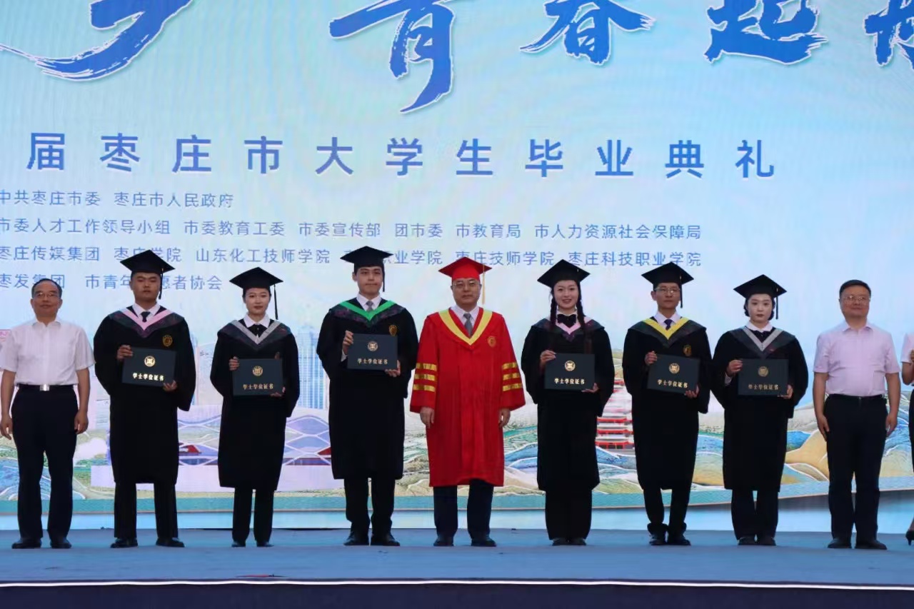 5月29日晚,由枣庄市委、市政府主办的“榴枣归乡 青春起航”2025届枣庄市大学生毕业典礼在市体育场举行。校党委书记高峰,党委副书记、校长丛海林应邀出席活动。