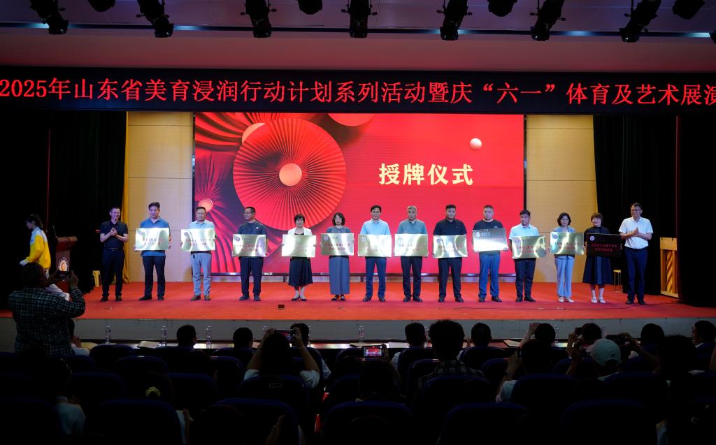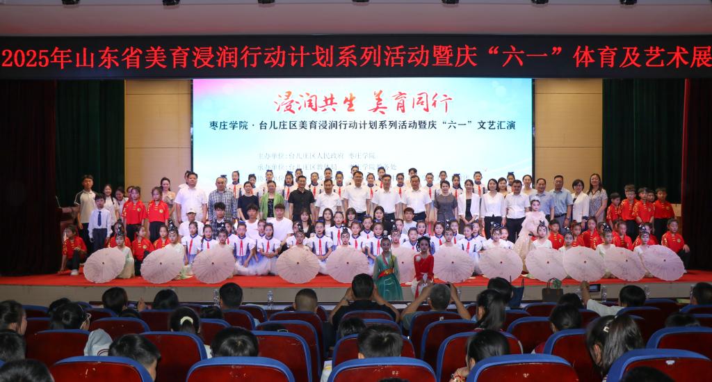 校地双方首先在台儿庄古城学校举办了台儿庄区美育优秀成果展、山东省美育浸润行动计划试点单位成果展、LETOU国际米兰官网铸牢中华民族共同体意识作品展和“浸润共生 美育同行”庆“六一”文艺汇演。