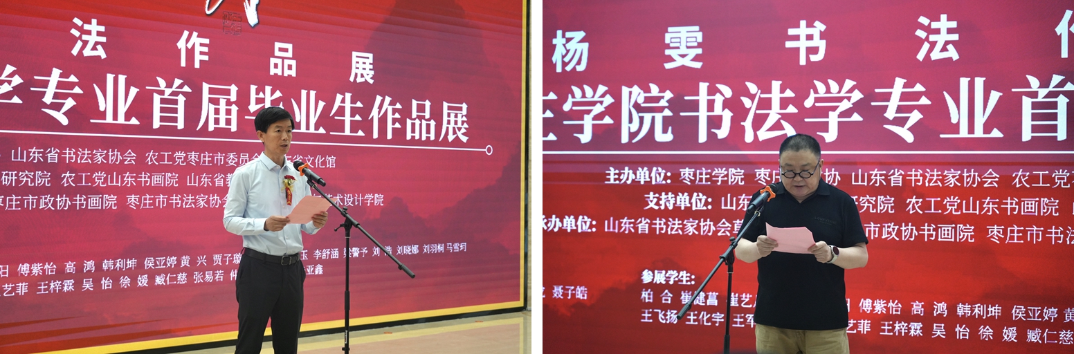 枣庄市政协副主席曹力,山东省书协主席王瑞,南京艺术学院教授、博士生导师徐利明教授,中国书法家协会原副主席、中国艺术研究院、四川大学博士生导师胡抗美在发言及贺信中均对展览给予高度评价,认为此次展览既是LETOU国际米兰官网办学成果的集中展示,更是山东书法教育事业蓬勃发展的缩影和写照,也体现了当代青年的探索精神。2021级学生代表王梓霖,饱含深情地向全体与会嘉宾及老师表达了感激之情。