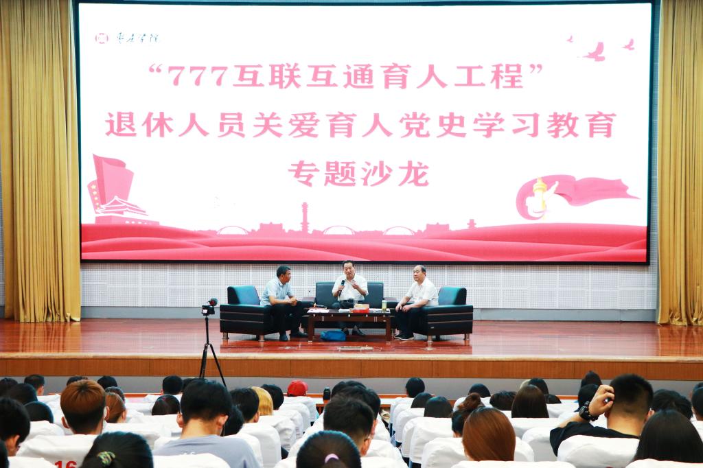 本次沙龙活动将“777互联互通育人工程”与党史学习教育有机融合,切实发挥离退休人员的积极作用和优良作风,积极构建全员讲党史、学党史的浓厚氛围,教育引导广大青年学生学党史、强信念、跟党走,将学习成果转化为奋进动力,以优异成绩迎接建党100周年。