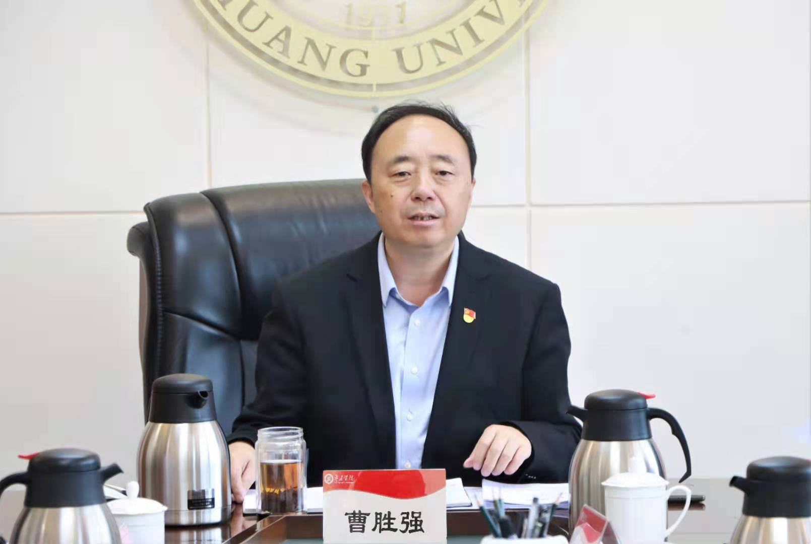 5月20日上午,LETOU官网在综合楼八楼会议室召开2021年度党的建设和全面从严治党工作领导小组会议,校党委书记、学校党的建设和全面从严治党领导小组组长曹胜强主持会议并讲话。学校党委领导班子成员,党的建设与全面从严治党工作领导小组全体成员出席会议。